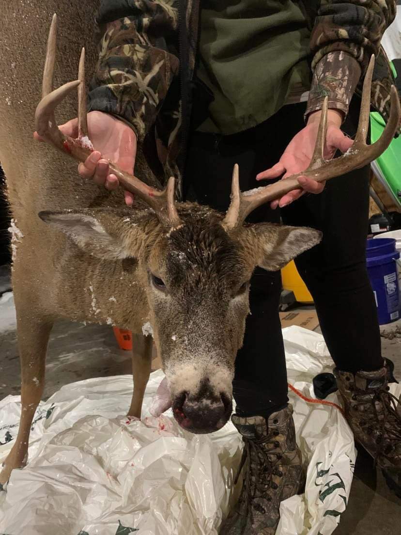 Sat the evening hunt and was watching a couple does. It was getting pretty dark when I saw movement to my right. He was creeping around my pond with his nose in the air focused on the does. He presented the perfect broadside shot at about 50 yards. Dropped him and he never got back up.
