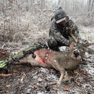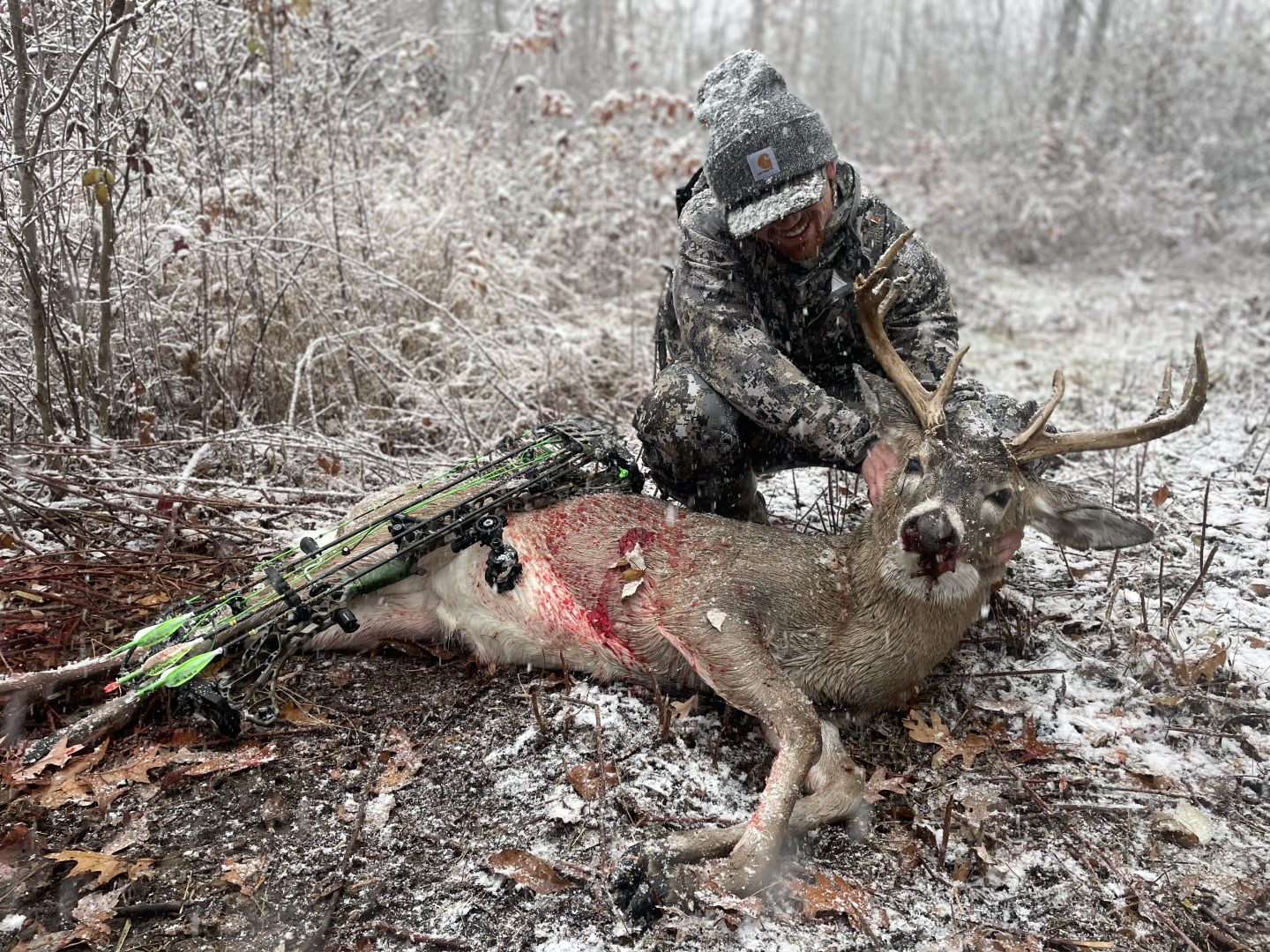 I was debating on going out Saturday evening. I got settled in the tree at 2:52 PM and this guy came through and I shot him at 2:58 PM. 6 minutes!