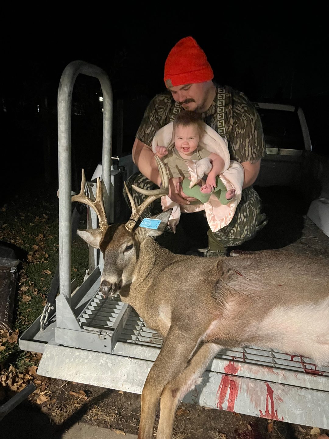 I have been hunting as hard as I can with a one year old and wife that works weekends. I have had multiple good sits during bow season and passed up a number of decent bucks and a ton of small bucks. I got out to the stand and it was dead as could be, not even a squirrel moving. Around 5 pm I started to have some doe come out followed by a small 4 point. The lingered around at about 30 yards and another few doe, a button and a six trickled in. I had eyes on a big doe thinking I might as well fill my freezer. I looked back over where the 6 had been standing and thought “my god, he got bigger?” All I could see was his body because his head was tucked behind a tree. Once he lifted his head up, I knew he was a shooter. I had 7 deer within 25 yds of my blind surrounding me 180 degrees so I had to move very carefully. I got my little single shot .44 mag up, he came into 20 yards and the rest is history. Piled up at 60 yards. Might be the last season I can hunt this property as the land owner is considering moving to the U.P. and I couldn’t think of a better way to end an era. Thank you to my wife for supporting my adventures and being willing to carry more of the load during hunting season and thank you to the best aunts and grandmas for helping out with the little one!
