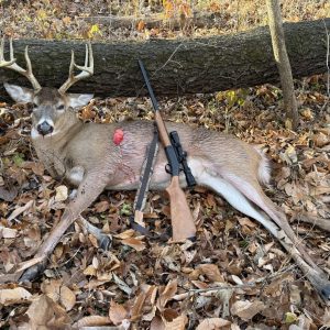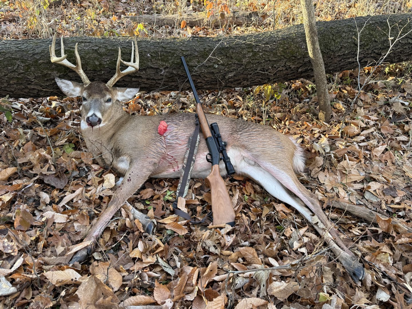I ran out to the stand a little after first light with it being a school morning for the kids, and was only sitting about 15 minutes until this guy came strolling in. I have not been gun hunting in 16 years, only bow. Needless to say, this was definitely one of my target bucks all season getting him on camera a couple of times, and he sure did bless me today. Biggest buck to date and first harvest with a gun!