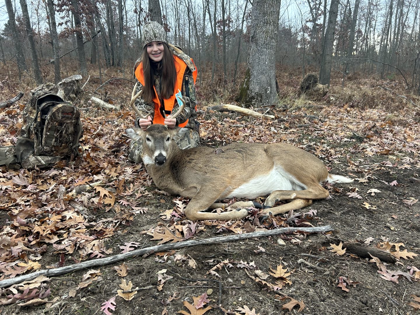 She went out with her Dad today expecting to shoot a doe but this nice 6 point walked out about an hour into being out.