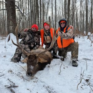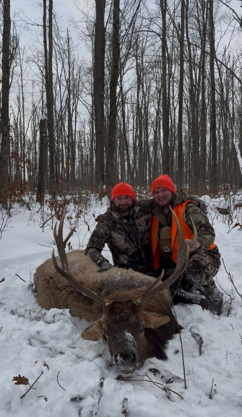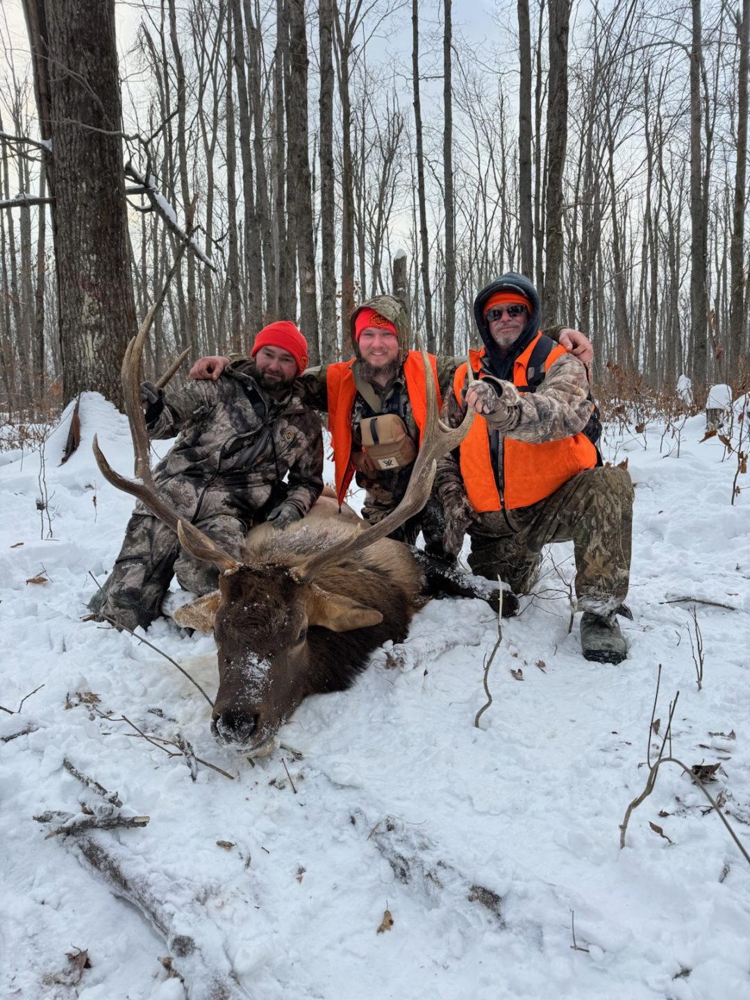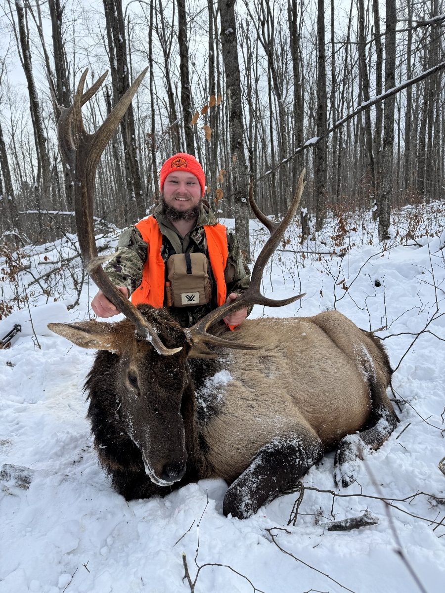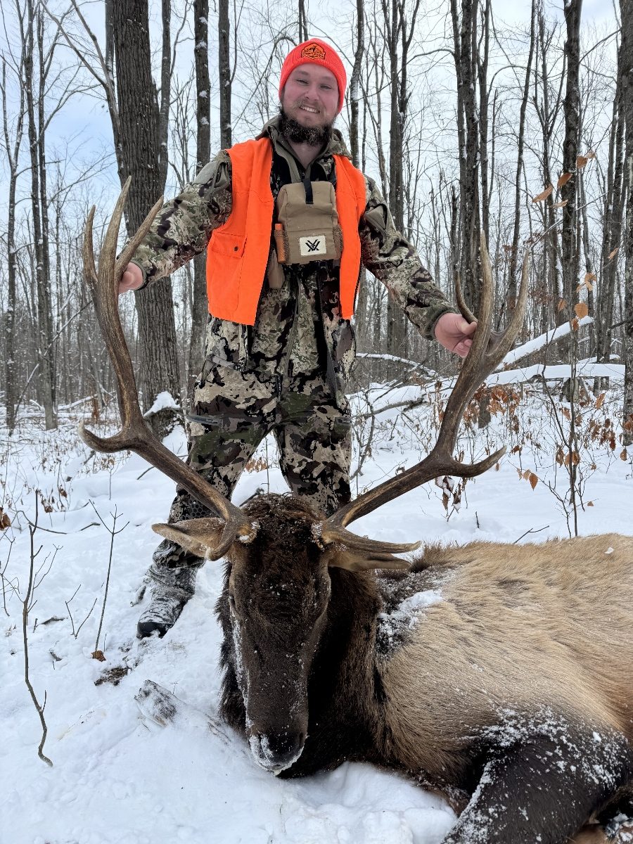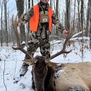 With 9° temperatures (-10° real feel) at 1 in the afternoon, we cut on to some fresh Bull tracks in the snow. A few hundred yards later, and I see an elk start to slowly jog away. I felt heart broken. Suddenly, another one jumped out, then another. 4 bulls slowly worked their way away from us. But I KNEW the first bull I saw was the one I wanted.