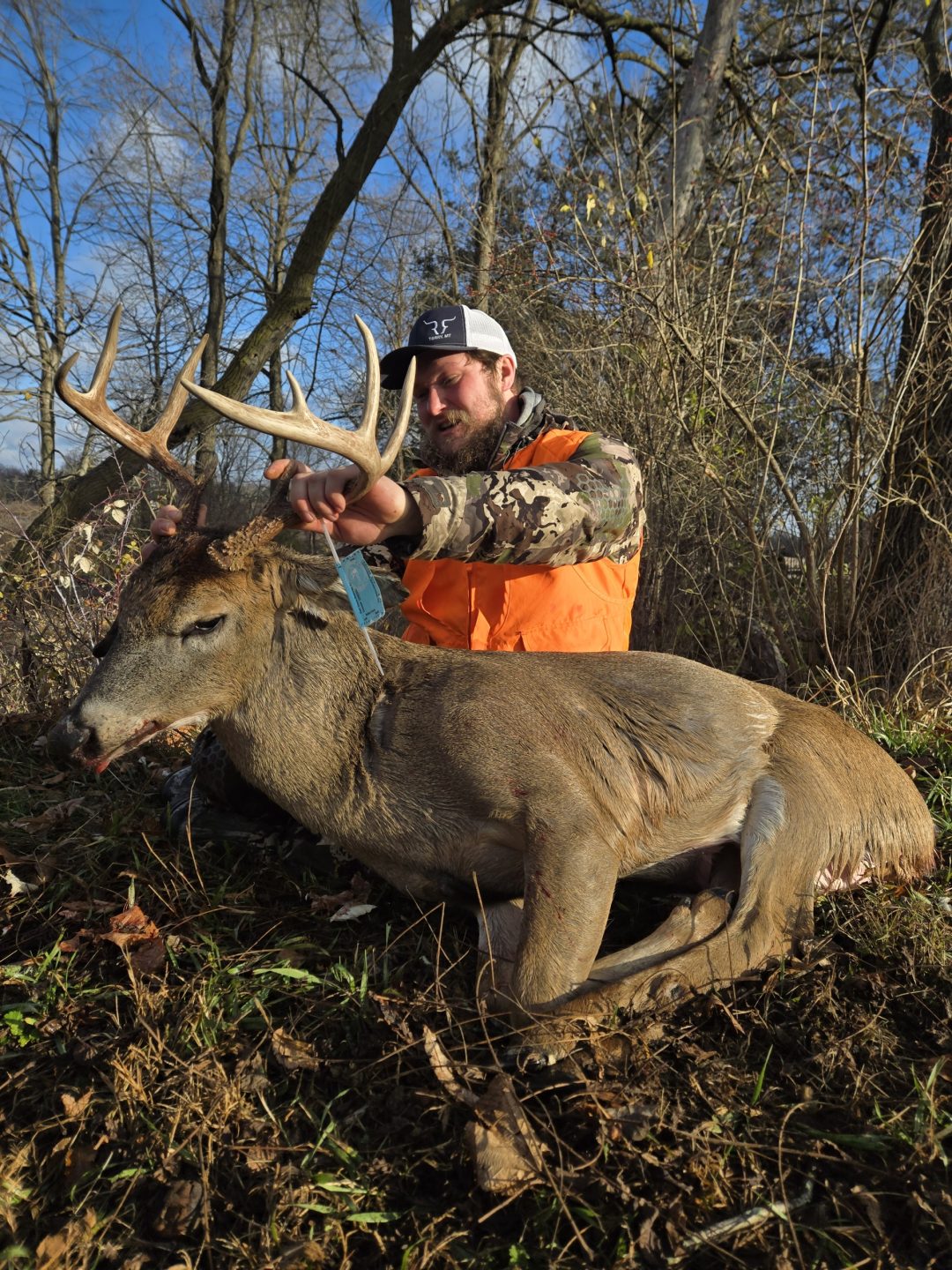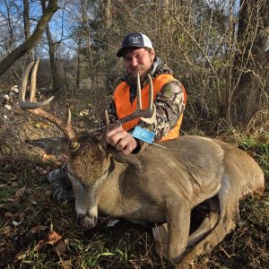 Climbed up around 6:50am and there were no deer in the field. At 6:55 i looked and saw a doe. Pulled my binoculars up and scanned. Saw him sitting in the thicks watching the doe. The next 14 minutes he tried to get her to leave. At 7:09 I decided after a long bow season of letting bucks walk, it was time to kill a buck. 140 yds free hand with the 350 legend and he never left the field. Very thankful to be with my brother and 2 nephews during this experience.