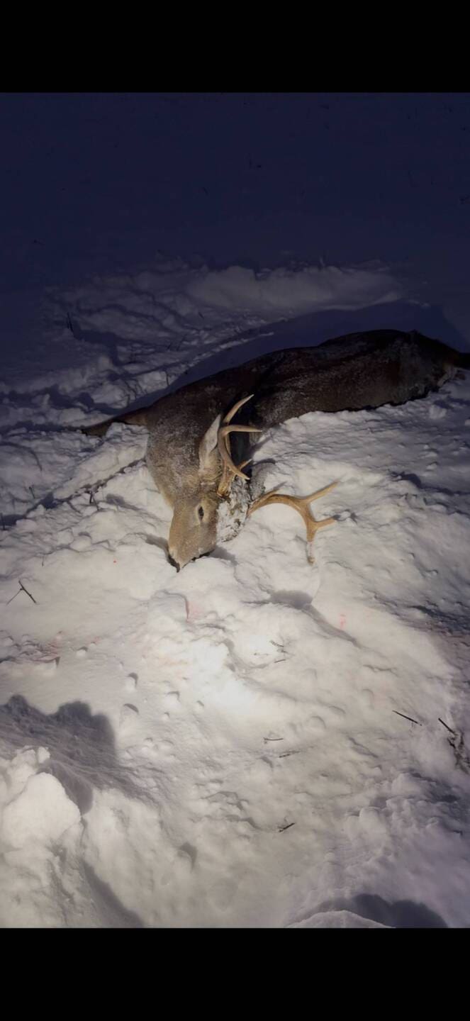 Watched this buck come in from 300yds. Took the shot when he was at 100yds. He ran towards me and got a bit of the drunken wobble and fell down. I rack another shell just in case. I watched his antlers bobble for a few seconds while I was prepared to shoot again. His head tipped to the side for a permanent siesta. Persistence pays off!