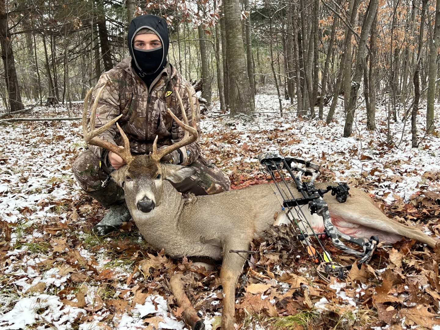Came through chasing some does, walked through at 15 yards and my release was frozen so I couldn’t get locked in to draw back. Thank god he circled back around to 30 yards and I nailed him