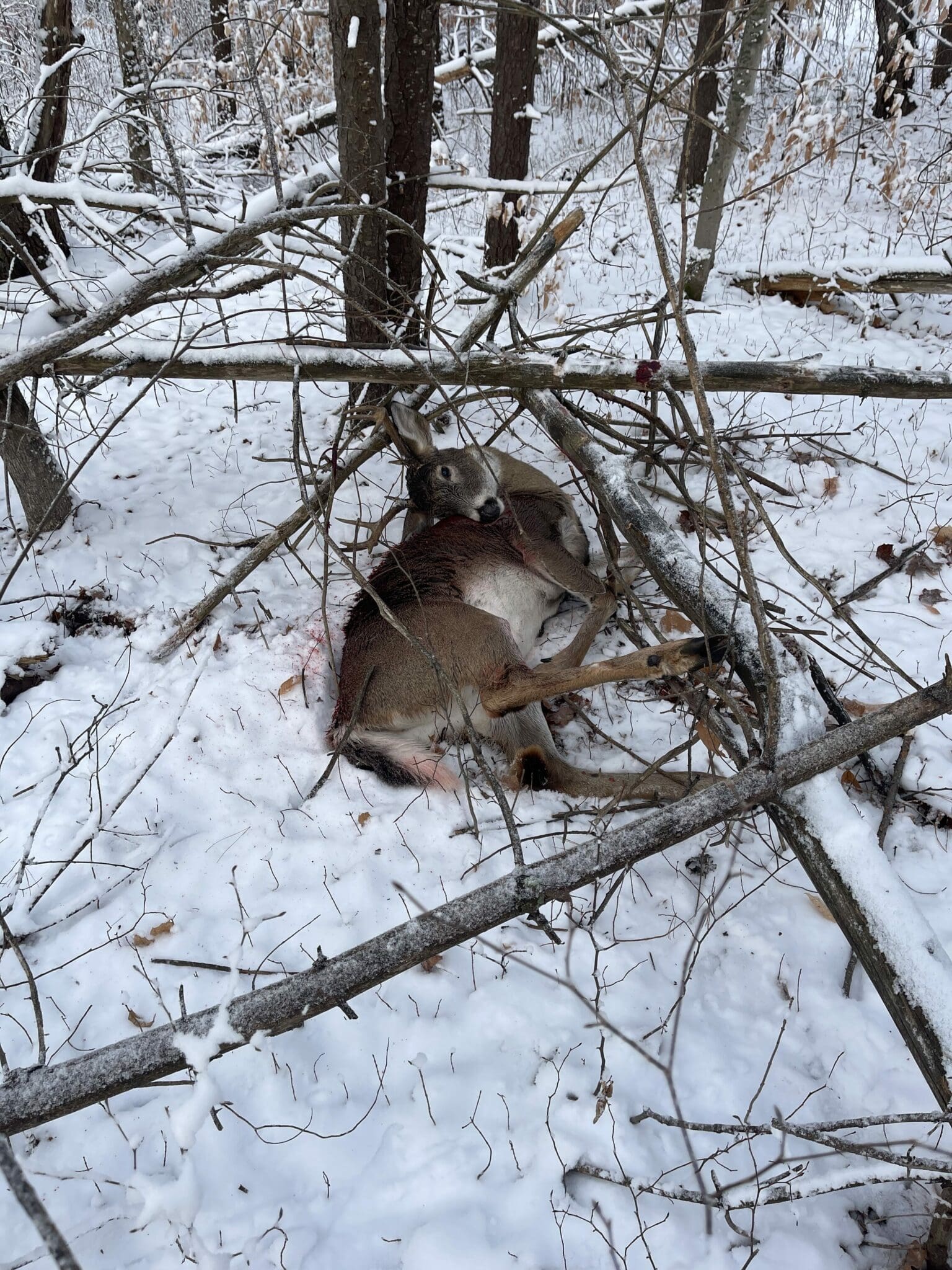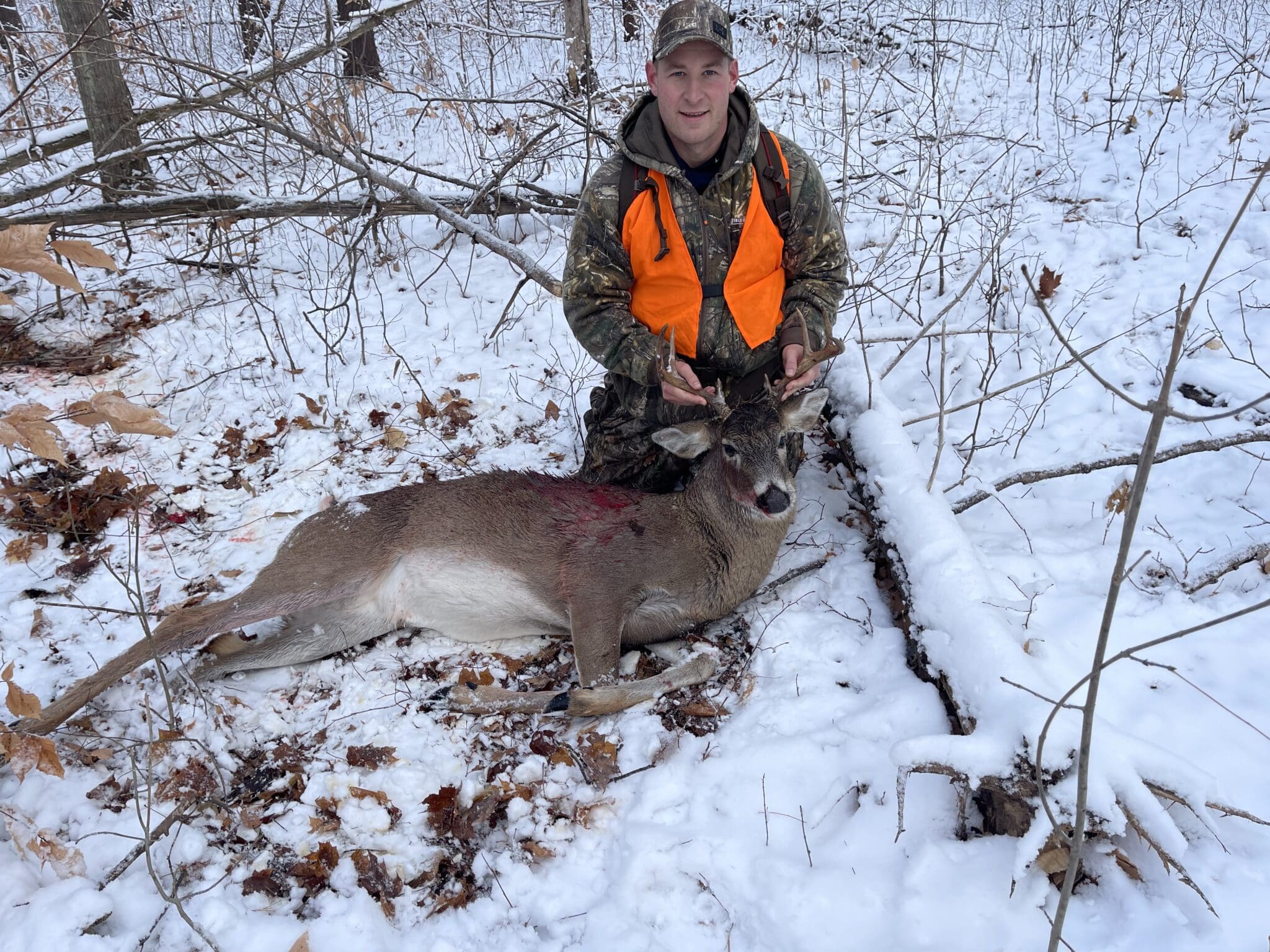 This Buck came in chasing a doe. Walked right into my shooting lane. Took him at 80 yards and he ran about 150 yards before piling up.
