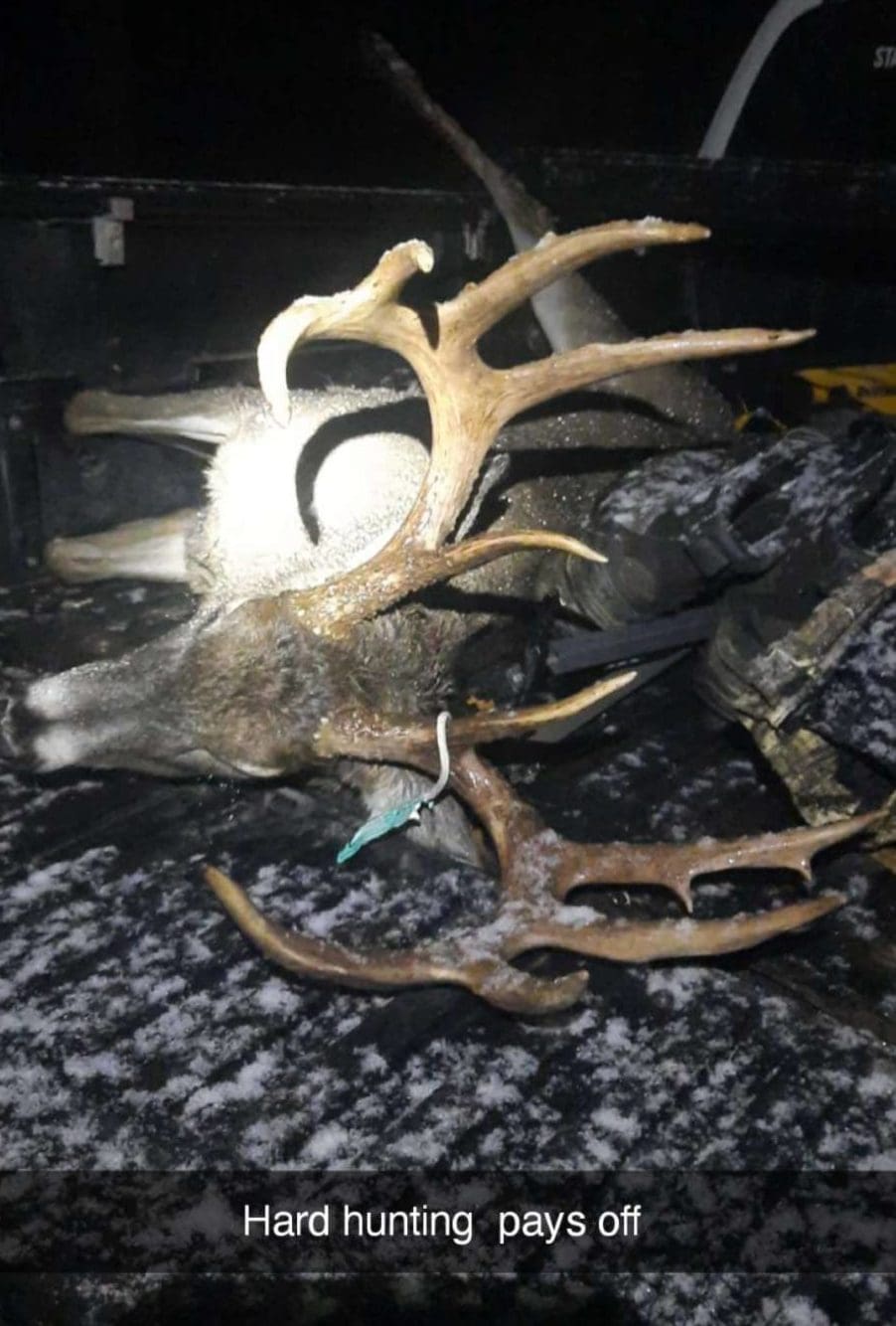 I have been hunting up north with my family for over 15 years and have been pretty unsuccessful. This year I decided I was going to hunt hard. I found an area with lots of buck activity and figured I’d set a stand up and leave it alone for rifle season. I sat all day and seen a couple small bucks, few does but it died of around 11am. At 440 I heard grunting in the thick stuff, I could tell it was deep but all we ever see up here is typical basket eights. I let one grunt out and I hear him stop. He waited about 10 seconds and come crashing and grunting out of the thick stuff heading right to me. We he stepped out about 120 yards away I about dropped my gun. I have hunted alot in Ohio and down state and this was the largest deer I have ever seen in person! He got into 110 yards and I let the ol 350 legend go. I forgot to even turn my scope power up, so I shot him on 3 power. He took a step to the side and just looked at me. Then turned and started walking back the way he came. I grunted and he turned and looked at me and kept walking. He got to the edge of the woods and I let sorbet bullet fly through the brush and he was gone. I called my cousin, told him I missed an up north state land monster. He told me before I get to worked up to get down and look for blood as it was getting dark. I couldn’t stand up in my tree stand for about 15 mins. I got down and found 0 blood, I was crushed. I started walking through the brush where he walked off and there he was, 5 yards into the woods!!!! I couldn’t believe it. He just walked off and died! It was a perfect heart shot.