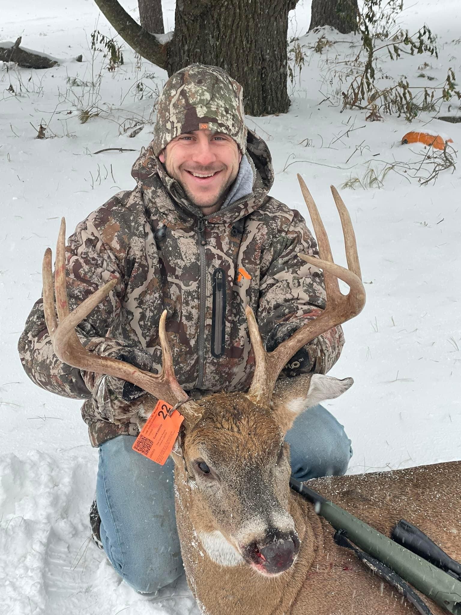 Tagged out with this beautiful 8pt. He showed up on camera over the last week. Finally on morning hunt he came through following a doe. Took about 5 mins (seemed like 20) for him to clear some brush. Once in opening about 110 yards out, I squeezed the the trigger on the 450. Went 5 yards and expired. My 3rd best score wise.