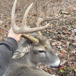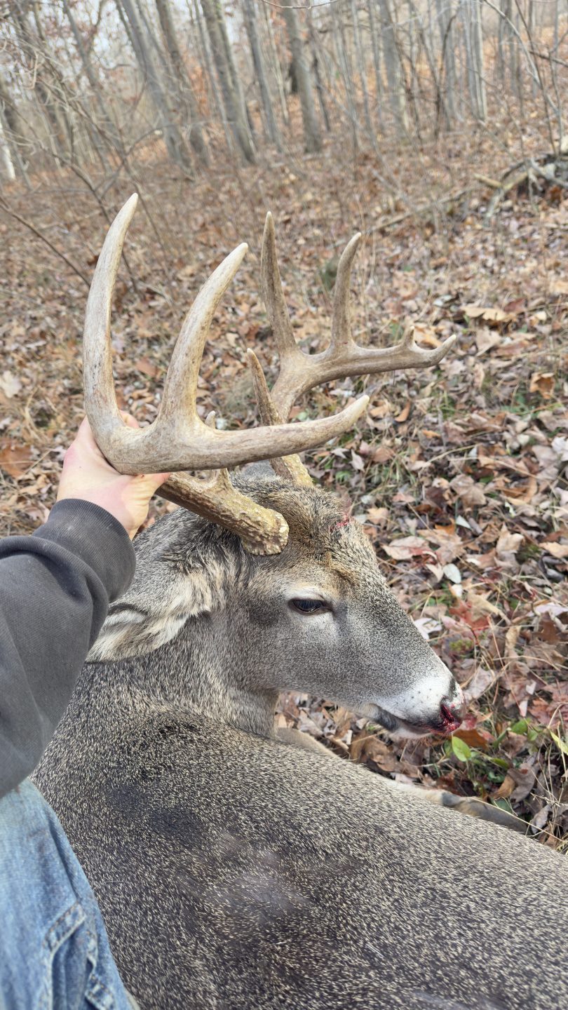I went to same property my son got his because we seen multiple bucks the second day of gun about 2:40pm a doe went threw and she was by herself so for 15 minutes, I watched and nothing so I began doing little things in the blind and decided I should look so I peaked out and all I seen was his rat coming out of the woods on the same trailer as that doe I missed the first shot and he presented me with only one shot the second shot. I was aiming at the base of his neck and struck him in the forehead. Nonetheless, I was so happy tagged out for 2025.