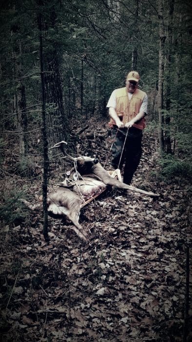 That’s what brothers are for. Unable to drag my deer because of a recent surgery.