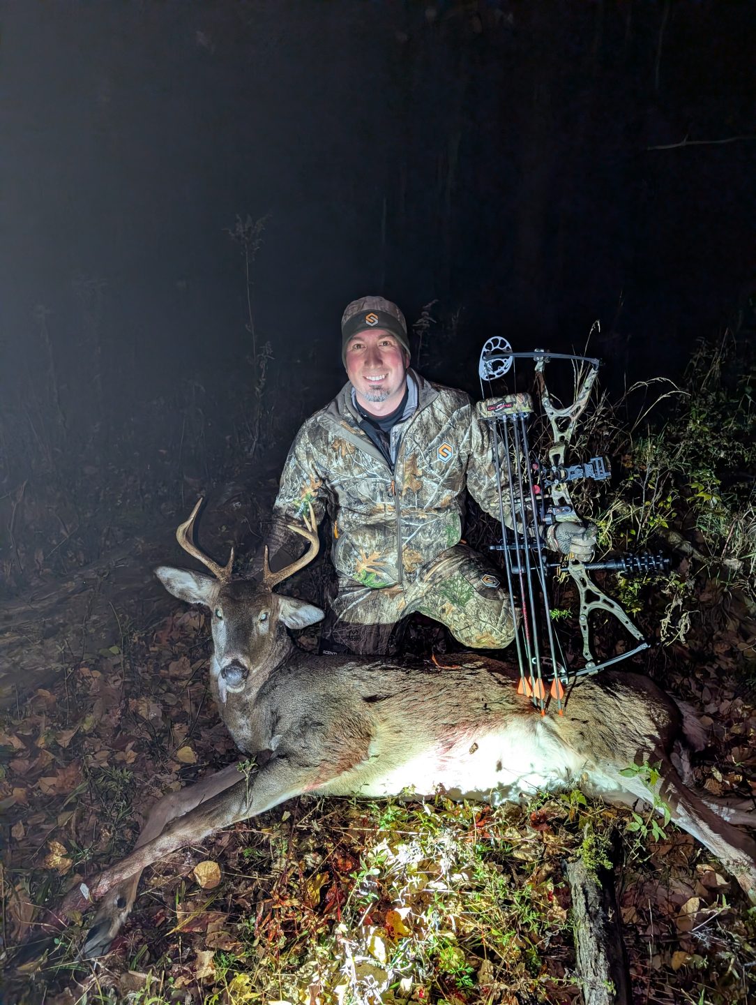 I’ve been hunting as much as possible this season and have been seeing quite a few bucks during recent hunts. However, this evening I was only seeing does during the hunt. During the last 30 minutes of daylight, I was only hearing squirrels running around that kept making me think they were deer. I kept looking everytime I heard the leaves rustle but there were just squirrels. Then, with 15 minutes left of shooting light after a few grunt calls, this nice 8 point came through by himself and gave me a 30 yard broadside shot from my tree stand! Thankful to harvest another nice 8 point almost exactly 2 years later from my last one on 11/2/2023! Thankful for another opportunity to harvest a nice buck with my bow!