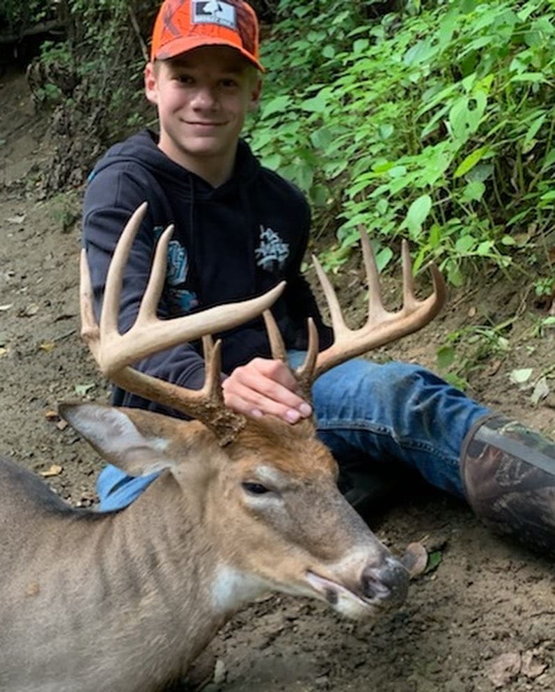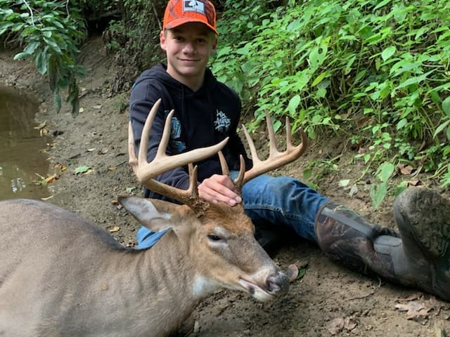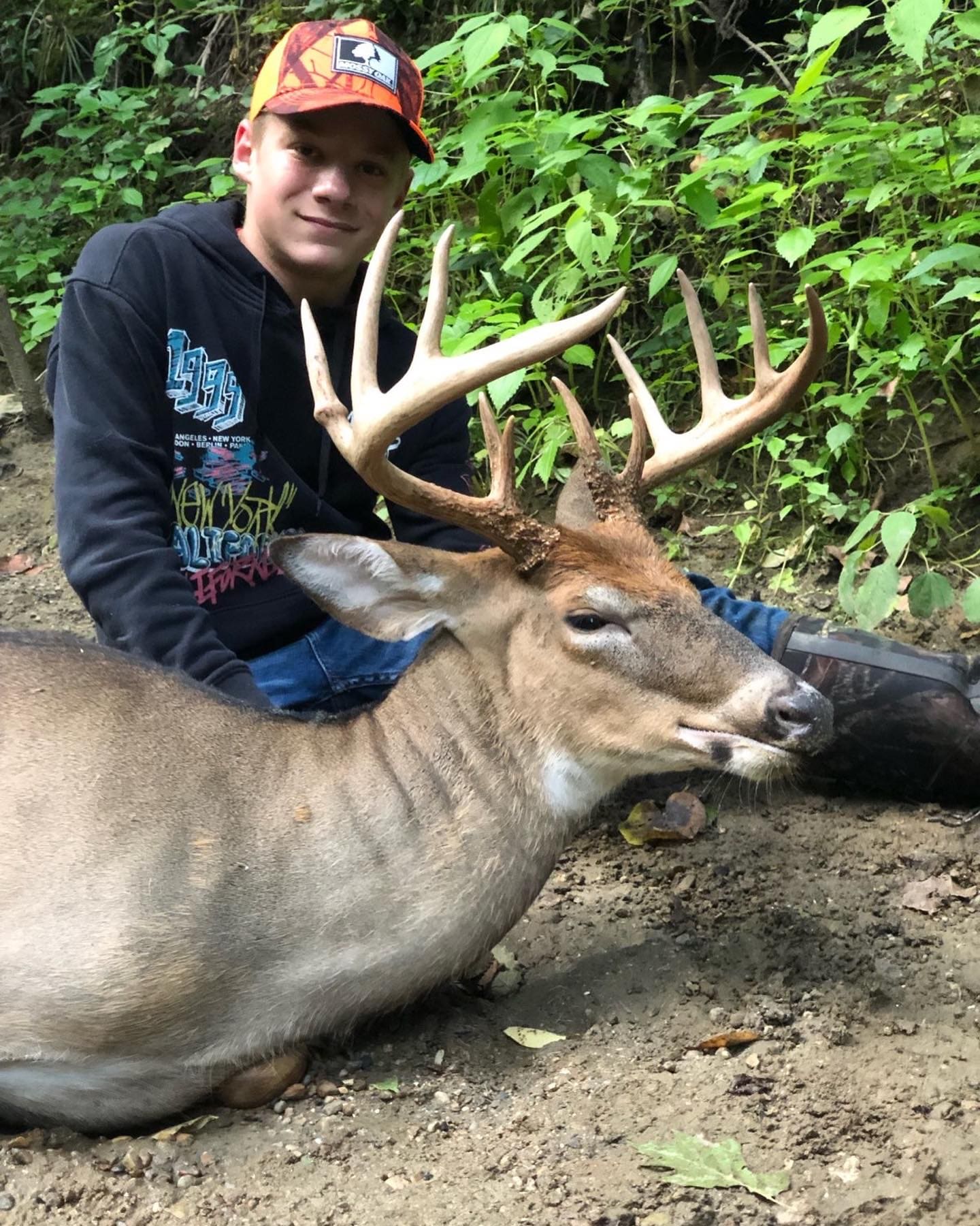 I shot this deer Sunday night and shot it in the kidney and clipped its lungs. Had to track it across a river. I thought was a small eight point when I shot.