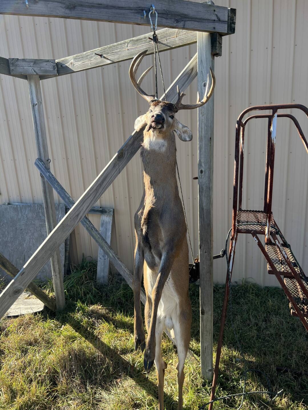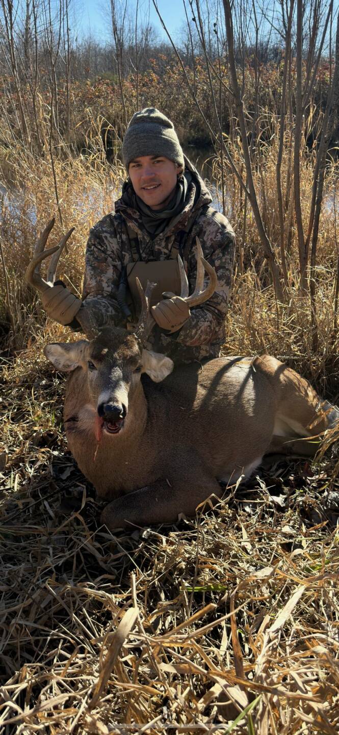 My buddy and I hadn’t seen much all morning. Slowest morning since opening day. We had decided to call it early and head out at 11. At 10:55 he came through the brush behind me on the other side of the pond. After 2 misfires, a jam and dropping the mag for my 450 he was still there at 50 yards. Hunting gods were on my side.