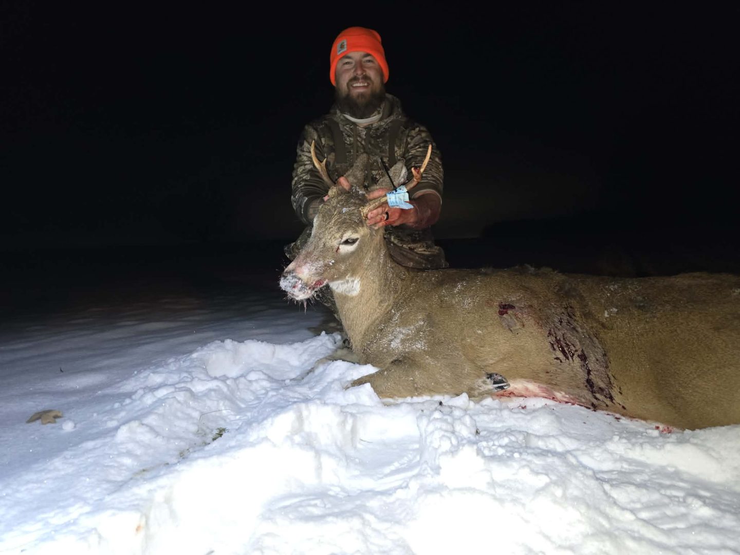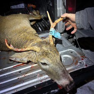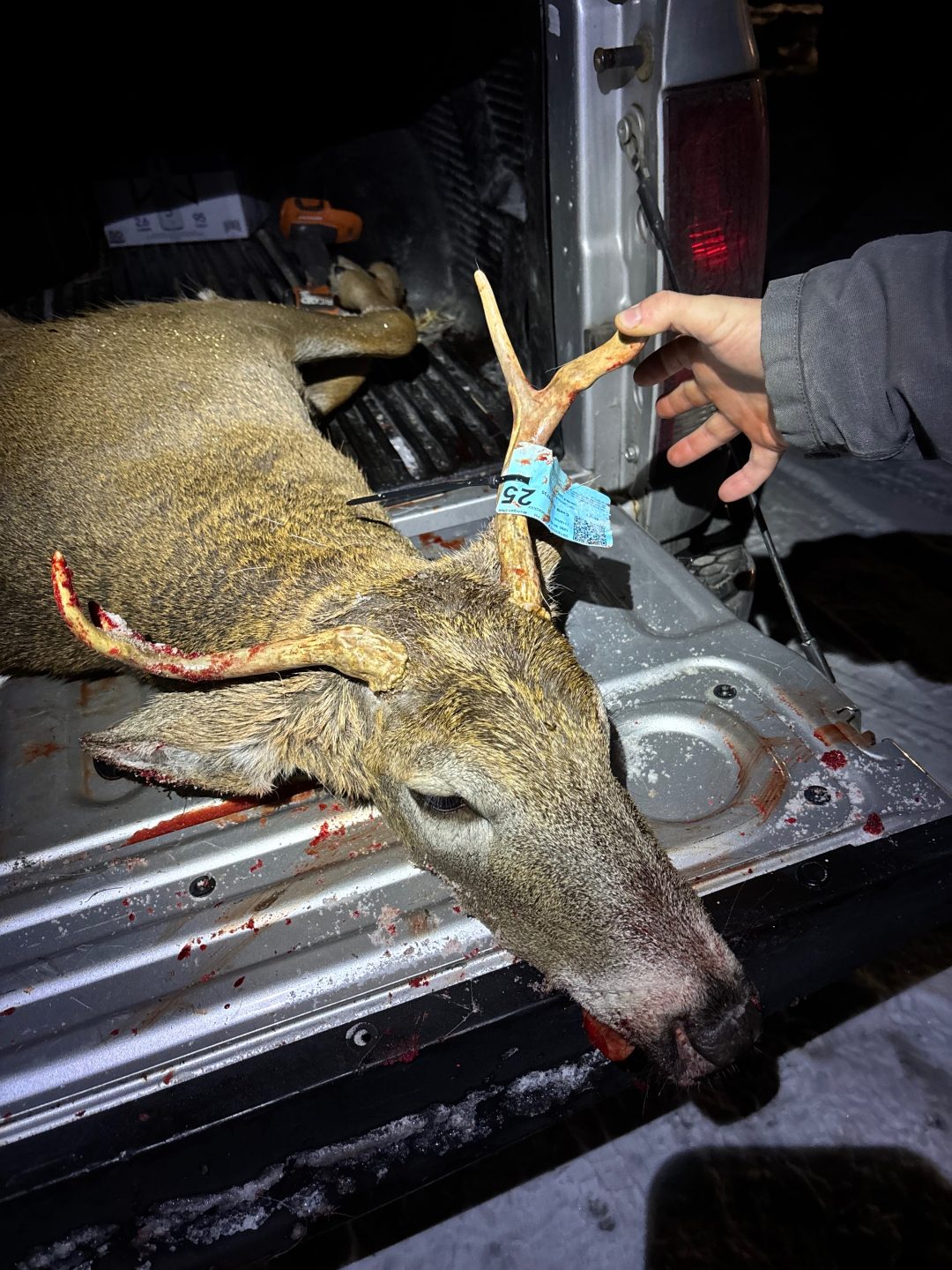 30 minutes before the end of the night a few button bucks and fawns with a doe came out of the brush and this guy came wandering in to chase the buttons off. Got him at 90yds and didn’t go 50yds. My first buck and first buck!
