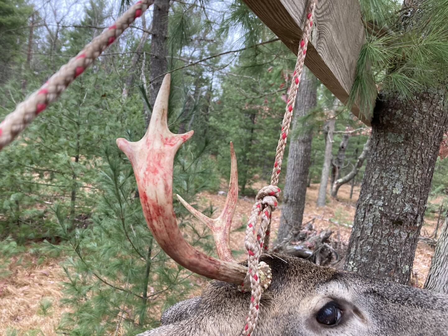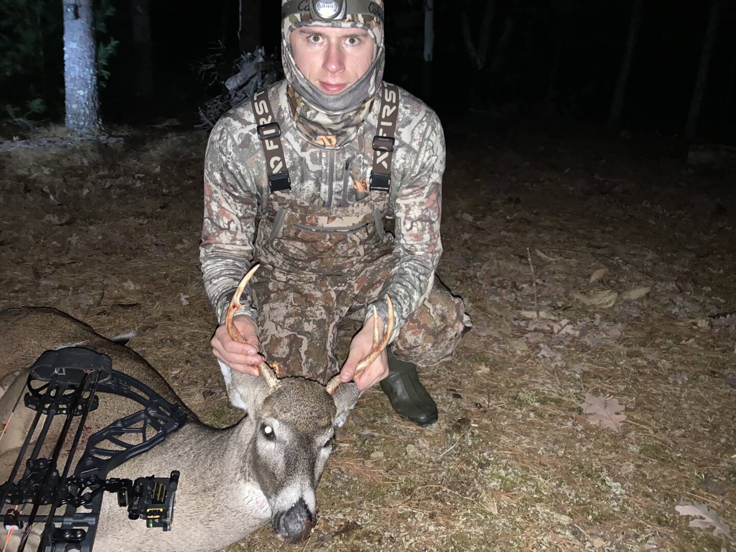 Made a move to a different spot after the morning hunt due to hearing a lot of commotion in another area. He came out about 30 minutes before the end of legal. He was feeding around and I waited for him to be broadside or slightlt quartered before letting it fly. He went about 100 yards. My first ever out of a bow and was using a saddle!!
