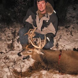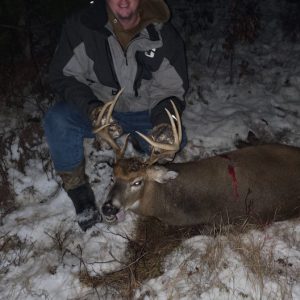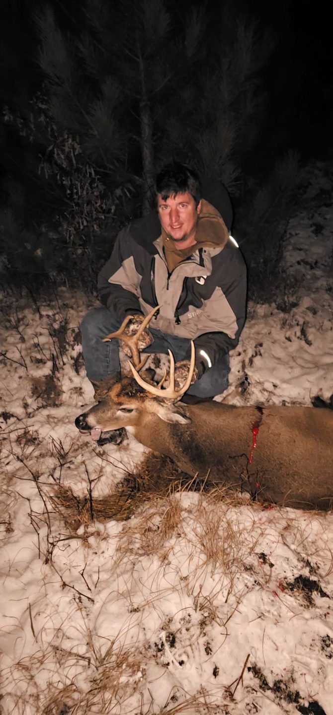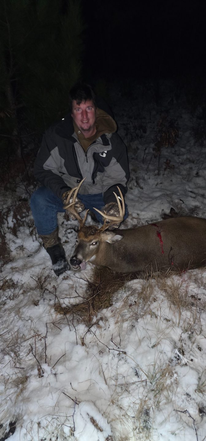 I started hunting with my 450 and after a few sits of not seeing anything. I decided to cut some branches to open up a shooting lane a bit farther. Swapped out from my 450 and picked up my trusty 300 wsm. Sure enough he stepped out at the very end of my new lane and dropped him right there.