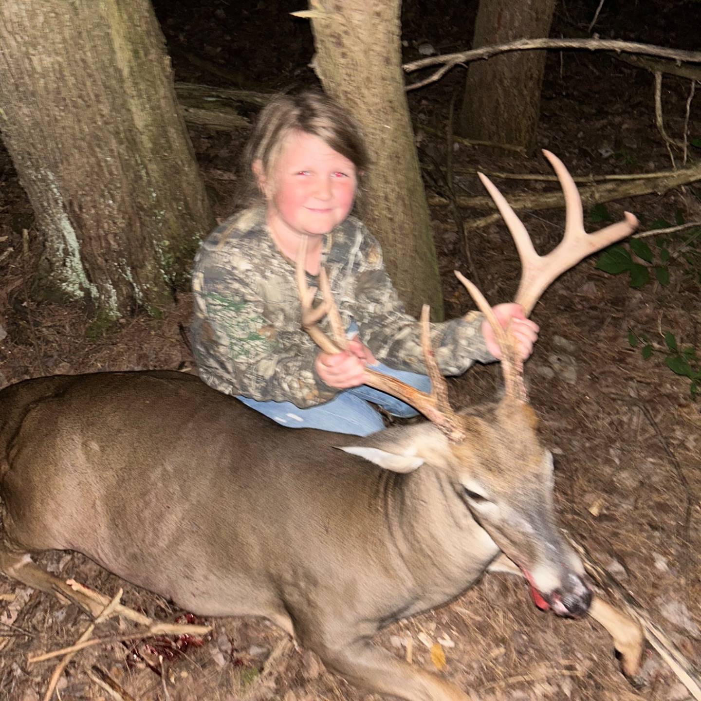 Long sit with no action. A few does moved in and then just as we were about to give up Dad spotted a monster and Willow made a good shot and the rest is history. Her second year hunting and second successful buck harvest. One proud Dad! She gives all glory to God