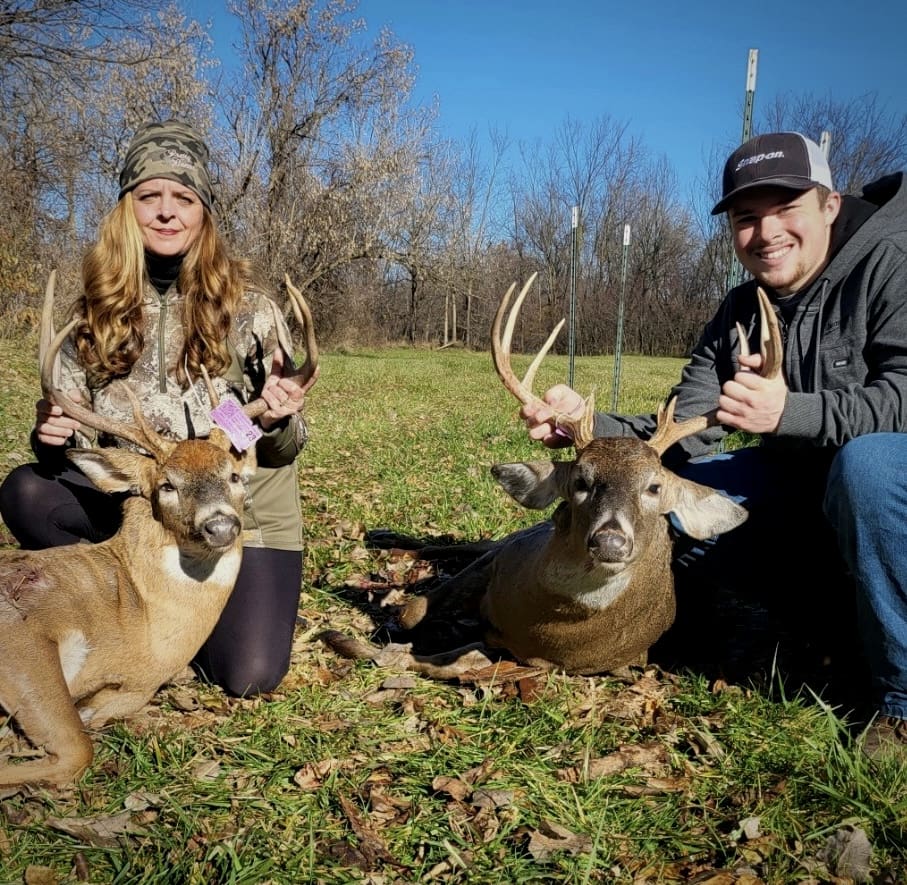 Zachary and his Aunt Amy were blessed to harvest these beautiful boys this weekend. 8 point taken mid afternoon, 9 point taken morning. #huntingfamily❤️