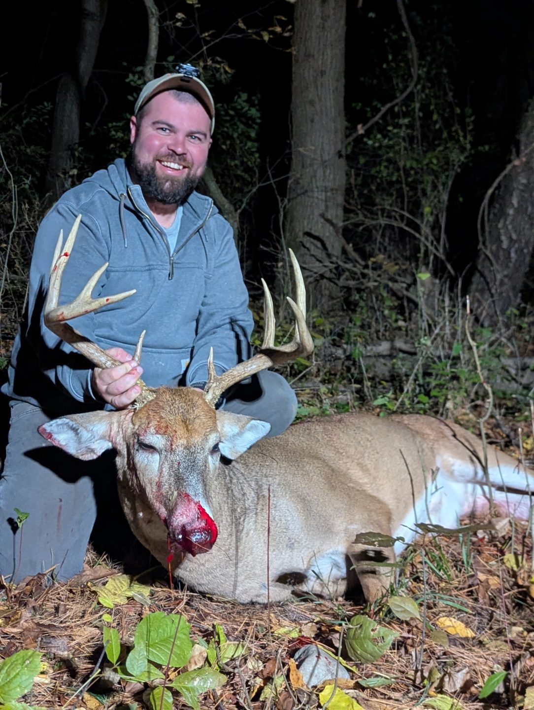 Evening hunt little later to the stand than I wanted to be. Passed 1 buck knowing hes in the area. 45 minutes after sitting he had appeared on the ridge line working back and forth, he disappeared and when he re appeared he was on the wrong side 12 yards looking right at me. That waiting game of 10 minutes felt like a life time. He walked around 18 yards and the rest is history. First buck taken off our farm.