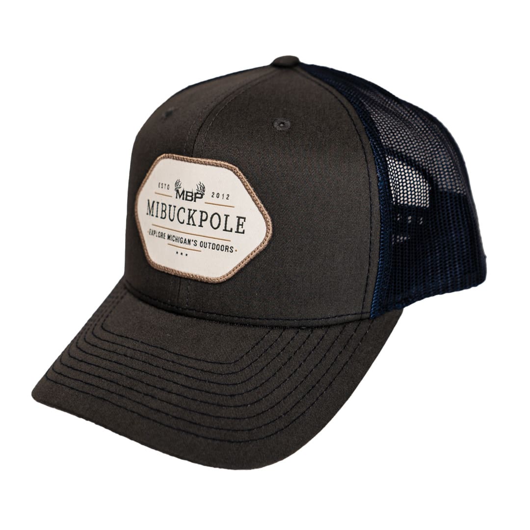 Are you a passionate outdoors enthusiast, a dedicated hunter, or just enjoy the outdoors who proudly calls Michigan home? Show your love for the great outdoors and your connection to the MBP (Michigan Buck Pole) community with our exclusive MBP Richardson 112 Trucker Hat Charcoal Navy – Established Patch. Crafted for comfort, durability, and style, this hat is the perfect addition to your outdoor adventures. A sleek charcoal and navy combo with the Established Patch—this MBP hat is versatile and sharp and the perfect accessory to complement your outdoor lifestyle. Wear it during your outdoor expeditions, or simply as an everyday accessory to remind yourself of the incredible experiences that the Michigan outdoors have to offer.